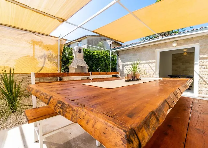 Vous pourrez bénéficier d'une cafetière/théière, fournis dans un espace de repas. La restauration en libre-service sur place comprend également un micro-ondes et un réfrigérateur. Vous pourrez prendre un repas au Mons, situé dans un rayon de 650 mètres. L'aéroport Aeroport de Pula est accessible en 15 minutes en voiture de villa. Le gîte offre des barbecues.